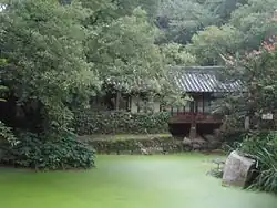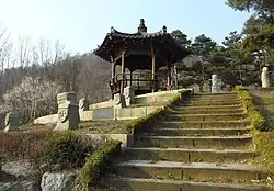 Gazebo in Ppuri Park🌍Ppuri Park,Jangsu Town(take the 312 or 313 through Jangsu Town, it's the last stop; or you could hike about 1 km down the road south from O-world).A family-oriented park on the far southern outskirts of town. Down by a smallish dam, there are the usual swan boats and the like, but the odd drawcard is the hill covered in stone statues representing local family lineages. Local Koreans no doubt have a great time pouring over these, tracing their roots (ppuri), but to the casual observer it's just a curious, if unusual, collection of modern art. A path also leads over a bridge and to the top of the cliff directly to the south where not only is there a pleasant view, but the peak is also littered with a bizarre array of wooden phalli.Free.