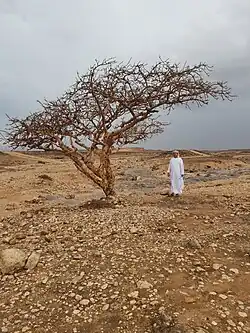 - 🌍 Wadi Dawkah Natural Park (off of Hwy 31). This dry wadi has an estimated 5,000 frankincense trees within a 9 km² area, the oldest of which are estimated to be more than 200 years old. The sap is still harvested here by the Bait Kethir Bedu tribe, with individual trees owned by different clans and families. Visitors can simply park by the road and walk over. Free.