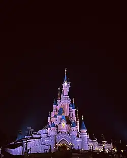 - Sleeping Beauty Castle — The undeniable icon of Disneyland Paris, the pink-painted castle with its blue spires towers at over 50 m (167 feet) tall and can be seen from almost everywhere in the resort. It has taken inspiration from the Neuschwanstein Castle in Germany. Everyone can enter the castle and visit La Gallerie de la Belle au Bois Dormant (Sleeping Beauty Gallery), a walkthrough attraction that retells the story of Sleeping Beauty through illustrated books, tapestries and stained glass windows. There is also La Taniere du Dragon (Dragon Cave), an atmospheric cave under the castle with an impressive animatronic dragon. It is accessible from a pathway to the left of the castle (to the right from Fantasyland).