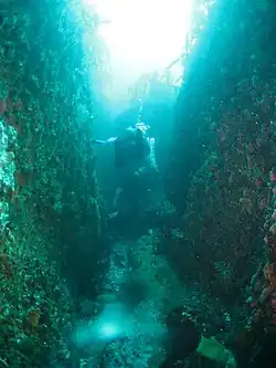 - A spectacular dive if the visibility is good. Lots of walls and overhangs, swim-throughs and deep, wide cracks. Rich invertebrate cover. Good site for dramatic wide angle scenic photography.