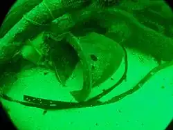 - There is an assortment of unidentified wreckage around the boiler, extending about 10m or more in an arc to the north.