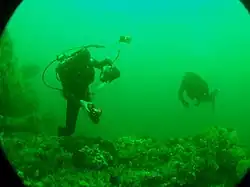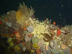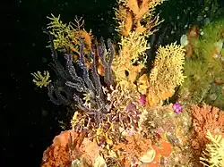 Much of the wreck is quite heavily overgrown with benthic invertebrates, but some areas are fairly clean, largely where crustose coralline algae have taken hold, or in a few cases where the wreckage is a copper based alloy. The benthos includes a variety of sponges, mostly fairly small, some small gorgonians, the occasional noble coral, assorted bryozoans, hydroids, nudibranchs and anemones.
