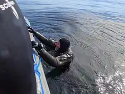 - A full wet-suit of at least 5 mm thickness, hood, boots and gloves.