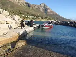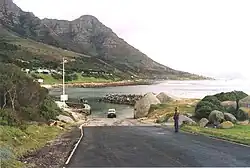 Outside the bay, but influencing the wave patterns in it, is Rocky Bank, an extensive reef of Table Mountain sandstone between 20 and 30 m depth on top, and sloping down to deeper than 100 m to the south.