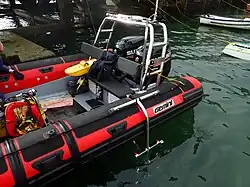 There is a new trend with some boats to provide a ladder for boarding. The "Christmas tree" style is relatively popular as it is easy to climb with fins on your feet. On rubber ducks it is usually hung over the side, and on rigid hull catamarans the transom is preferred.