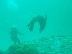 There are colonies of African penguins in False Bay, but it is extremely unusual to see them during a dive. On the other hand, the Cape fur seals are both curious and unafraid of divers, and are very commonly seen, both in False Bay and on the Atlantic seaboard. There are several places where they can almost be guaranteed to be seen.