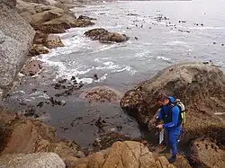 Cape Point at the tip of the Cape Peninsula is considered the boundary between two of the five inshore marine bioregions of South Africa. To the west of Cape Point is the cool to cold temperate South-western Cape inshore bioregion, and to the east is the warmer temperate Agulhas inshore bioregion. The Cape Point break is considered to be a relatively distinct change in the bioregions and this can be clearly seen from the difference in marine life between the Atlantic seaboard of the peninsula and False Bay.