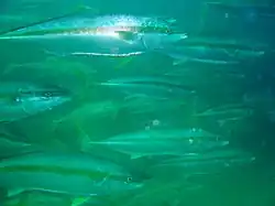 The common Snoek, which is the cornerstone of a local linefishing industry, is very shy and hardly ever seen by divers, in spite of its habit of shoaling in large numbers.
