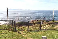 The site may be easily identified by a short wall at the side of the road with a sign indicating the boundary of Simon's Town, and a large paved parking area between the road and the railway line.