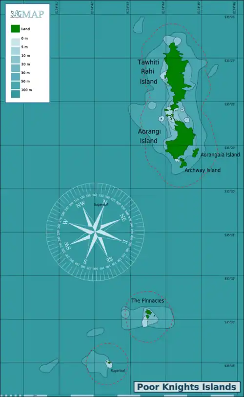 Chart of the Poor Knights Islands showing the extent of the marine reserve