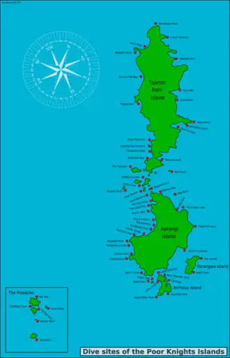 This article is intended to provide the already qualified Scuba diver with information which will help to plan dives in the waters of the Poor Knights Islands, whether as a local resident or a visitor. Information is provided without prejudice, and is not guaranteed accurate or complete. Use it at your own risk.
