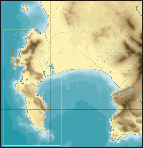 Lambert's Bay is a small fishing town of the west coast of the Western Cape 280 km (170 mi) north of Cape Town. This is a stretch of coastline exposed to wind and seas with a westerly component. It is not generally considered a scuba diving destination, but is quite popular for freediving for kreef (west coast rock lobster) in season.