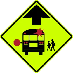 Drivers visiting from other countries should take heed of special laws that apply to school buses. Most importantly, when a school bus stops on a road to discharge or pick up students, it puts on flashing yellow lights and then flashing red lights. When the latter are on, usually while its passengers are going to or from the bus, all traffic in both directions must stop and cannot pass the bus, regardless of whether the passengers (usually children) need to cross the road, until the yellow lights resume. Many states require stopping even if the road is divided, but this rule is not universal—some states that allow traffic to continue in this situation post signs to remind drivers not to stop if a school bus is on the opposite side of a divided road (for example, Kentucky sometimes but not always does this). In California and some other states, when a school bus stops at an intersection, traffic in all directions must stop.