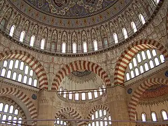 - 🌍 Selimiye Mosque (Selimiye Camii), Mimar Sinan Cd. Daily 05:30-23:30. Magnificent mosque that dominates the city skyline, approach from northwest to appreciate the full effect and miss the shops. It's the masterpiece of Mimar Sinan, built 1569-75, and listed as a UNESCO World Heritage Site. The eight pillars supporting the dome are unobtrusive, so the dome hangs over a vast interior space, while 999 windows admit a flood of light. Four delicate fluted minarets soar to 70.89 m, surpassed only by Qutb Minar in Delhi. The interior is decorated with calligraphy and geometrical designs in pink and blue. The inverted tulip decoration, an emblem of Edirne, is said to acknowledge the previous landowner who was reluctant to give up his tulip garden for the mosque to be built. Free.