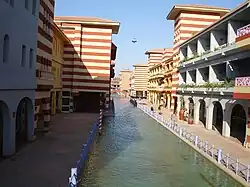 There are high apartment buildings along the coast, behind them a lagoon with canals. There are plans for a presidential palace, a building for ministries, three universities, 15 skyscrapers, and 30,000 hotel rooms, about a third of which have been built. Some buildings that are already finished include the El Masa mosque, a huge mall, restaurants, and three movie theaters.