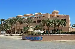 - 🌍 Labranda Club Paradisio El Gouna (previously Club Med El Gouna, Sonesta Paradisio), ☏ +20 65 354 7934. Right at the beach, it's an all-inclusive hotel with 239 double rooms opened in 1989. There are two restaurants; the main restaurant Marco Polo and the Morgan's Beach Bistro as well as three bars. When it comes to swimming and bathing; there are two pools, one children's pool, a sauna and a steam bath. Rooms have balcony, a/c, satellite tv, bathroom with shower, minibar and safe. Wi-Fi is free in public areas, payable in the rooms. Diving operator Coraya Divers and kitesurfing operator Osmosis Kiteboarding are based here. upmarket.