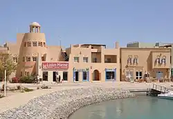 Resorts in Egypt, both on the Mediterranean and Red Sea, are usually a bunch of hotels on a previously uninhabited piece of coastline. El Gouna was built with a different mindset; a real town with inhabitants and "free standing" restaurants, bars, night clubs and shops as well as a marina for yachts. The same concept was used for Marina el-Alamein on the Mediterranean, Taba Heights on the Sinai east coast and Port Ghalib.