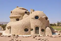 - 🌍 Desert Breath (نفس الصحراء / Nafas aṣ-Ṣaḥrāʾ). A landscape artwork, created west of the resort between 1995 and 1997 after a design by Greek artist Danae Stratou. It's made up of 89 big cone-formed pits and heaps arranged like a spiral. In the middle there was a pond, 30 m in diameter that has long evaporated. The artwork has intentionally been left to deteriorate through erosion.