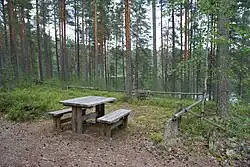 There are also many areas for protection of specific types of nature or specific features of the nature, such as mire, old-growth forest and esker protection areas. Camping and campfires are forbidden in old-growth forest and in certain lush wood types (lehto, lund). Otherwise these areas typically have no restrictions relevant for visitors, other than those on any land, but you should probably be especially careful about not causing erosion or wildfire and not to harm plants and wildlife.