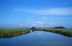 Fischland-Darß-Zingst is a typical example of northeastern Germany's graded Baltic Sea Cost. Created by the tides and currents, it forms a barrier which separates a lagoon (German: Bodden), the Saaler Bodden, from the open sea. While the relatively straight seaside has some of Germany's finest sand beaches, the quieter lagoon side—divided into many small bays and surrounded by reeds—is a unique natural habitat, protected as a National Park.