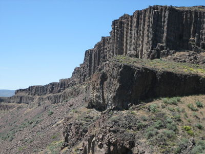 The Old Vantage Highway takes you through the coulee, where you can visualize the flood as it unfolded: the north cataract flows past The Feathers, a distinctive set of basalt columns at the front of the main climbing area. Follow the cliff wall until it ends at Echo Basin, a south cataract merging into the north one. At the top of the Echo Basin cataract, you can see diatom, a white powder used for mining. At the bottom, you may notice the plunge pools eroded from the falling water. Keep going, and you will eventually come to the end of the old highway at the Columbia River.