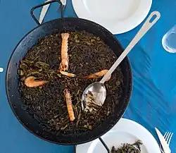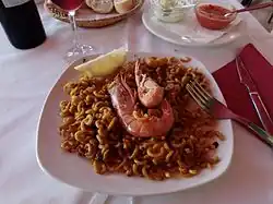 Fideuà, a paella-like dish with thick, short noodles and seafood, is originally from Gandía. A variation of this is fideuà negra, prepared in the same manner but with the addition of squid ink.