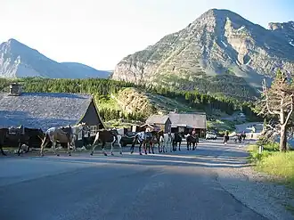 Horses on the road in Glacier National Park
