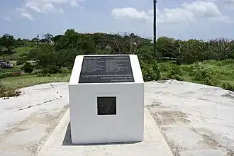 - π Memorial to the Cuban Internationalist Martyrs is a litmus of island politics. 24 Cuban workers building the new airport were killed in the 1983 US invasion. They were lightly armed and under instruction to resist, so were they combatants or what? This monument was installed in 2017 under the NNP government, which was conservative but pro-Cuba. In 2022 they were replaced by the centre-left NDC, who might endorse the monument or studiously neglect it.