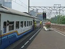 Although all cities in the Greater Jakarta area have several railway stations, almost all long-distance trains arrive at Gambir or Pasar Senen railway station in Central Jakarta. There are trains to and from destinations throughout Java. The station of Bekasi, in addition, is served by several trains from cities in Western Java.