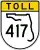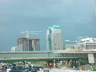 serves as a tolled 'beltway' around the greater Orlando Metropolitan area. State Road (SR) 417 goes around the east side of town from I-4 in Fours Seasons/Celebration through the Kissimmee, Oviedo and ends at I-4 south of Sanford. SR 429 traverses some of the highest elevations in Orange County and is often within a few miles of the Lake Wales Ridge. It runs along the west side of Greater Orlando. The road peaks at Mile Marker 13 where on clear days it is possible to see the skyline of downtown Orlando to the northeast and various portions of Walt Disney World Resort to the southeast.