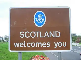 - Walk all the way to England. The border is the little River Sark which runs south to join the River Esk. In Gretna Green it's at the east end of Main St, in Gretna it's southeast on B7076 towards Longtown. Cameras focus on the "Scotland welcomes you" sign once visitors realise that the border bridges are prosaic and the river a muddy creek.