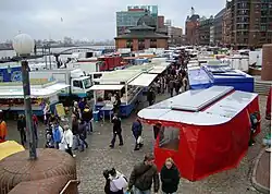 - Fischmarkt (Fish Market) — Every Sunday morning vendors praise wares of virtually every type at Hamburg's oldest open-air market, dating back to 1703. The market takes place at the foot of the century-old Fish Auction Hall, where live-bands perform jazz, skiffle, country, or western music. Open every Sunday from 05:00-09:30, in winter from 07:00-09:30.