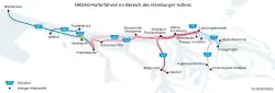 - while S2 and S5 take the north route via Dammtor, Sternschanze (Messe) and Holstenstraße.