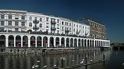 - 🌍 Alsterarkaden (North of the Rathausmarkt.). The white arcades over the canal are Hamburg's prime shopping location