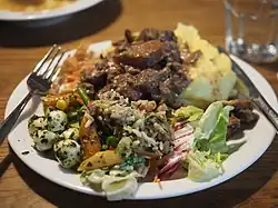 - 🌍 Wanha Mylly, Linnanrakentajantie 12 but Johan Sederholmintie 8 (behind the building) if you need to park your car (in Herttoniemi district). M 11:00-21:00, Tu-F 11:00-22:00, Sa 12:00-22:00, Su 12:00-21:00. Casual fine dining in the former Herttoniemi manor. Specializes in steaks, with the large Lankkupihvi steak served on a wooden platter as the house special. Extensive wine list which you wouldn't expect to find in this part of Helsinki. In the summer you can enjoy your meal in the outdoor garden if you like. mains €20-40, 3-course menu €50-70.