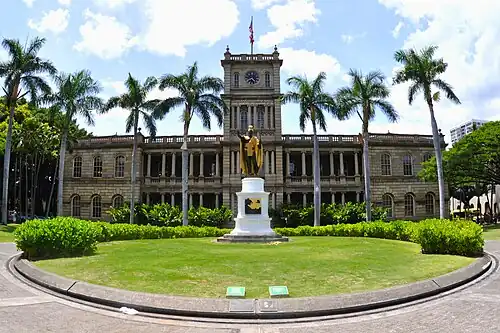 - π Ali'iolani Hale, 417 S King St (across King St from `Iolani Palace). A historic building that is the seat of the Hawaii State Supreme Court and is noted for the Kamehameha the Great Statue in front, which is often adorned with leis.