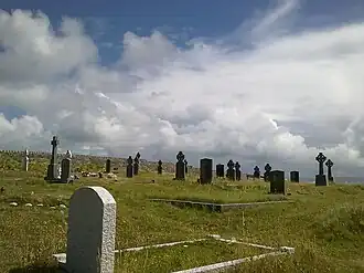 - Cill Cheannanach (Church of the Canons or of St Gregory) is near the old landing stage on the east of the island.