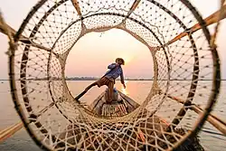 - Sunset at the lake. When your boatman approaches a fisherman, he will likely do the iconic Inle fisherman pose for you, balancing their net on one leg and leaning over the water. But as you near them, you will find outstretched hands demanding money for the pose. You should to tell your boatman not to wait near the fishermen if you do not wish to pay them.