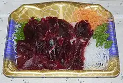 The fishing port of Ayukawa (鮎川) is one of the homes of Japan's controversial whaling fleet, and whale (鯨 or くじら, kujira) is a local speciality served in many restaurants. Ethics aside, few locals are enamored with the stuff: in addition to tasting like fishy meat, it's commonly associated with wartime deprivation and school lunches.