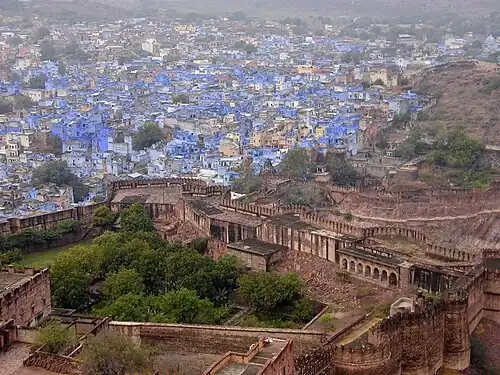 Jodhpur is also known as the Blue City, because most houses in the old city are painted in shades of blue. This is particularly noticeable on the north side of the town, known as Brahmpuri due to the many Brahmins that live there.