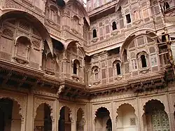 - Sadar Haveli Heritage Guesthouse, Near Ummed Chowk, Mohalla Laiquann, ☏ +91 291 261 9392. A restored 200-year-old haveli in a quiet part of the old town at the bottom of the hill under the fort. 4 rooms with large beds and 24 hr hot water. The rooms are arranged around a central courtyard garden as is the usual haveli style and the family that runs it make you feel very welcome. Great views of fort and city from the many roof terraces. In-house dining available with mains between ₹150 and ₹200. Room prices vary depending on season, ₹400-1,000.