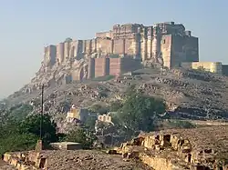 Jodhpur (Hindi: जोधपुर) is the second largest city in the state of Rajasthan. It is called the Gateway to Thar, as it is on the edge of the Thar desert. It is also called the Sun City as the sun shines (bright and hot) almost every day of the year.