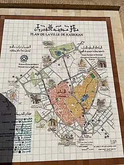 Kairouan (Arabic: القيروان), sometimes spelled Kairwan, Kayrawan or Al Qayrawan, is a city in Tunisia. It's a holy city in Islam, ranking fourth after Mecca, Medina and Jerusalem as a place of pilgrimage. Reputedly seven visits here are the equivalent of one to Mecca. With its large mosques and rich cultural history it has been designated as a UNESCO World Heritage Site.