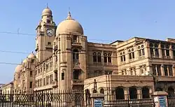 🌍Karachi Municipal Corporation Building(KMC Building),M.A. Jinnah Rd.One of the historical British Raj buildings, has evolved an iconic status as one of the landmark structures of Karachi. This Anglo-Mughal architecture building was built in 1930 with local sandstone from Gizri and Jodhpur red sandstone at the front and is said to be the crown jewel of colonial era architecture in the city. The clock tower was made to honour and commemorate the visit of King George V, the Emperor of India of that time. Today the building houses the offices and various departments of the Karachi Municipal Corporation.