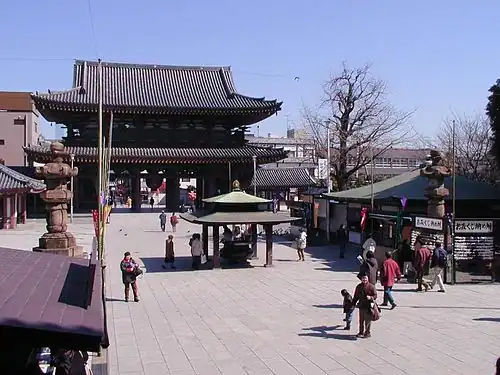 - 🌍 Kawasaki Daishi (川崎大師, officially Heikenji 平間寺). A large temple dedicated to famed monk and scholar Kobo Daishi (see Mt. Koya). Featuring a 8-sided, 5-storied pagoda and more large temple buildings than you can shake a stick at, Kawasaki Daishi is a textbook example of a Japanese temple and remarkable primarily for the fact that on a weekday you can pretty much have the place to yourself. Easily reached on foot from Kawasaki Daishi station, a 10-minute stroll through a shopping arcade. Being one of the largest temples in the greater Tokyo metropolitan area, this place is phenomenally popular as a place for locals to pray in the New Year at midnight.