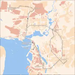 Kazan's Metro system has just one line, the red line running from Aviastroitelnaya in the north to Prospekt Pobedy in the south. Visitors are only likely to use it between Kazan-2 railway station (Severny Vokzal «Северный Вокзал») in the north, Kremlyovskaya («Кремлёвская») ie the Kremlin in the centre, and Ploshchad Tukaya («Площадь Тукая») which has eating places and hotels.