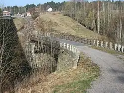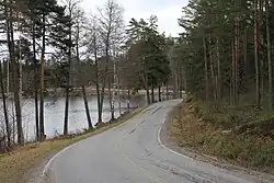 The route crosses the river Kymi (Swedish: Kymmene älv), one of the largest rivers in Southern Finland. The western major branch of Kymi is crossed at 🌍 Ahvenkoski, best known for its hydroelectric plant. Between 1743 and 1809 Kymi formed the border between Sweden and Russia, testament to this legacy are the remains of the bastions on both sides of the border. Today the river simply marks the border between the regions of Uusimaa and Kymenlaakso (Swedish: Kymmenedalen) and is crossed by both a highway bridge and a brand new motorway bridge. If you're biking or walking you can use the even older bridge, a few hundred metres north-east, though dating from 1927 it's not particularly old. Before crossing, the 🌍 Strömfors ironworks in Ruotsinpyhtää can be an interesting side trip.