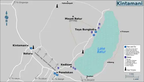 - Batur Lakeside Hut, Kedisan Kintamani (on the caldera road at Penelokan), β +62 81337536464, info@baturlakesidehuts.com. Check-in: 13:00, check-out: 12:00. Balinese Hut. Not very well maintained. From Rp 650,000.