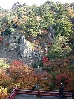 - 🌍 Nata-dera Temple (那谷寺) (36 minutes by Komatsu Bus bound for Natadera from JR Komatsu Station. Get off at the Natadera bus stop and follow the signs). Mar-Nov daily 08:30-16:45, Dec-Feb daily 08:45-16:30. Popular on the Japanese tourist circuit, this temple is noted for its extensive grounds, beautiful garden and natural caves. One of best times to visit is in late autumn when the colorful red foliage is truly spectacular. Nata-dera's history can be traced back to 717 AD. Adults ¥500, children ¥300.