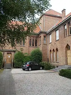 - 🌍 Salesian Monastery (Klooster van de Visitatie), Hebronlaan 5. The order of the Salesians was founded in 1610 close to Annecy in France by Jeanne de Chantal and Francis of Sales, who gave his name to the order. On 12 February 1667, a monastery was founded in Brussels -- then part of the Southern Netherlands -- but the success of the order was strongly variable in time and by the first half of the 19th century it was nearly extinct in Brussels. A second start on 21 November 1845 had more success, and not even a century later the original location was too small to house the order. Architect Paul Bellot, born in 1876 and specialised in religious architecture, was tasked with the design of a new monastery located outside Brussels. Then still rural Kraainem was chosen because of its remote location, at the time there were no other buildings on the hill, and the closest settlement was Low Kraainem which was only accessible by a narrow unpaved road (now the Kapellelaan). Construction started in 1928, and by the end of 1930 when it was finished, the monastery had become a popular pilgrim destination. Unlike similar monasteries in Belgium, which started out small and were gradually expanded, the availability of sufficient space and budget allowed the entire site to be built at once between 1928 and 1930. All buildings thus show the same style elements, many of which were typical for the designs of Paul Bellot: polychrome bricks from Zandvoorde (a municipality close to Oostende near the Belgian coast) and extensive use of concrete for structural and decorative purposes. Art deco and brick modernism influences can be observed in all aspects of construction. Only the building sides facing the streets (Kapellelaan and Hebronlaan) are decorated (for example, a Madonna sculpture above the entrance), the sides facing the inner sanctum, gardens and orchards do not have any decoration. The architecture and degree of decoration reveals the originally intended purpose of the rooms in the buildings, a feature called architecture parlante. The facades are also hierarchically decorated, with the chapel as most important and thus most extensively decorated part of the structure. The interior resembles a Medieval monastery, with style elements of the Arabic and Mozarabic arts. Illumination was considered paramount by Paul Bellot, and windows are consequently large enough to illuminate the rooms they are intended for, without penalizing decoration. Much of the original woodworking, both indoor and outdoor, has been preserved, as evidenced by the oak inner doors and staircases. The monastery is still in use today, and remains the only Salesian monastery in Belgium. It is not normally opened to visitors, reservations are mandatory. The monastery can be reached from Low Kraainem by following the Jozef van Hovestraat and afterwards the Kappellelaan up the hill.